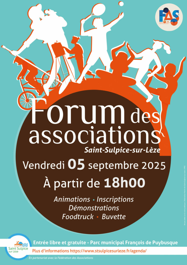 Le Forum des associations se tiendra le vendredi 05 septembre 2025 dans le parc municipal François de Puybusque à Saint-Sulpice-sur-Lèze. Il débutera à partir de 18h00, les inscriptions aux différentes associations seront ouvertes…